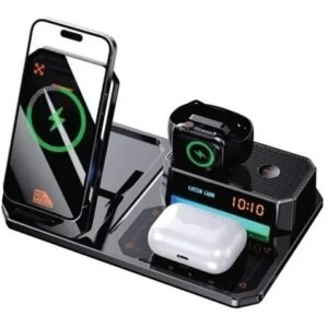 • عملکرد ۶ کاره: شارژ گوشی، اپل واچ، ایرپاد، چراغ خواب، ساعت و اسپیکر در یک دستگاه.