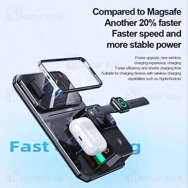• سازگار با دستگاه‌های مختلف: گوشی‌های اندروید و iOS، ایرپاد، اپل واچ سری 1 تا 9، و آیفون‌های سری 12 به بالا با MagSafe.