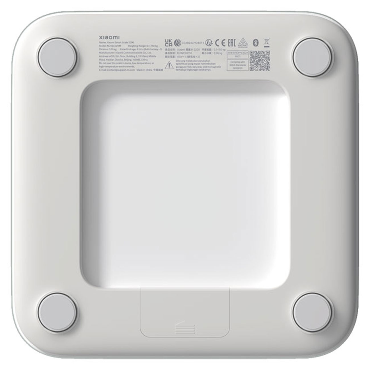 بدنه Xiaomi Smart Scale S200 از شیشه تمپر و پلاستیک مهندسی ساخته شده و قطر 24.5 میلیمتر و ابعاد 280x280x24.5 میلیمتر دارد؛ وزن محصول 1.2 کیلوگرم است. لبههای گرد و پایههای منحنی ثبات هنگام استفاده را افزایش میدهد و از لغزش روی سطوح صاف جلوگیری میکند، که ایمنی را بهویژه برای کودکان یا سالمندان تضمین میکند. نمایشگر LED با نوردهی مناسب، اعداد را حتی در محیطهای کمنور واضح نشان میدهد. طراحی مینیمال این ترازو، آن را به مکملی شیک برای دکوراسیون مدرن تبدیل کرده و با رنگهای سفید و مشکی، هماهنگی با هر فضایی را آسان میسازد. مقاومت بالای مواد در برابر ضربه و فشار، دوام طولانیمدت را تضمین میکند، حتی با استفاده مکرر در محیطهای پرتردد.